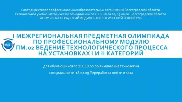 С 16 по 17 декабря 2025 г. в техникуме состоится I Межрегиональная предметная олимпиада по профессиональному модулю ПM.02 Ведение технологического процесса на установках I и II категорий для обучающихся по УГС 18.00.00 Химические технологии специальности 18.02.09 Переработка нефти и газа.